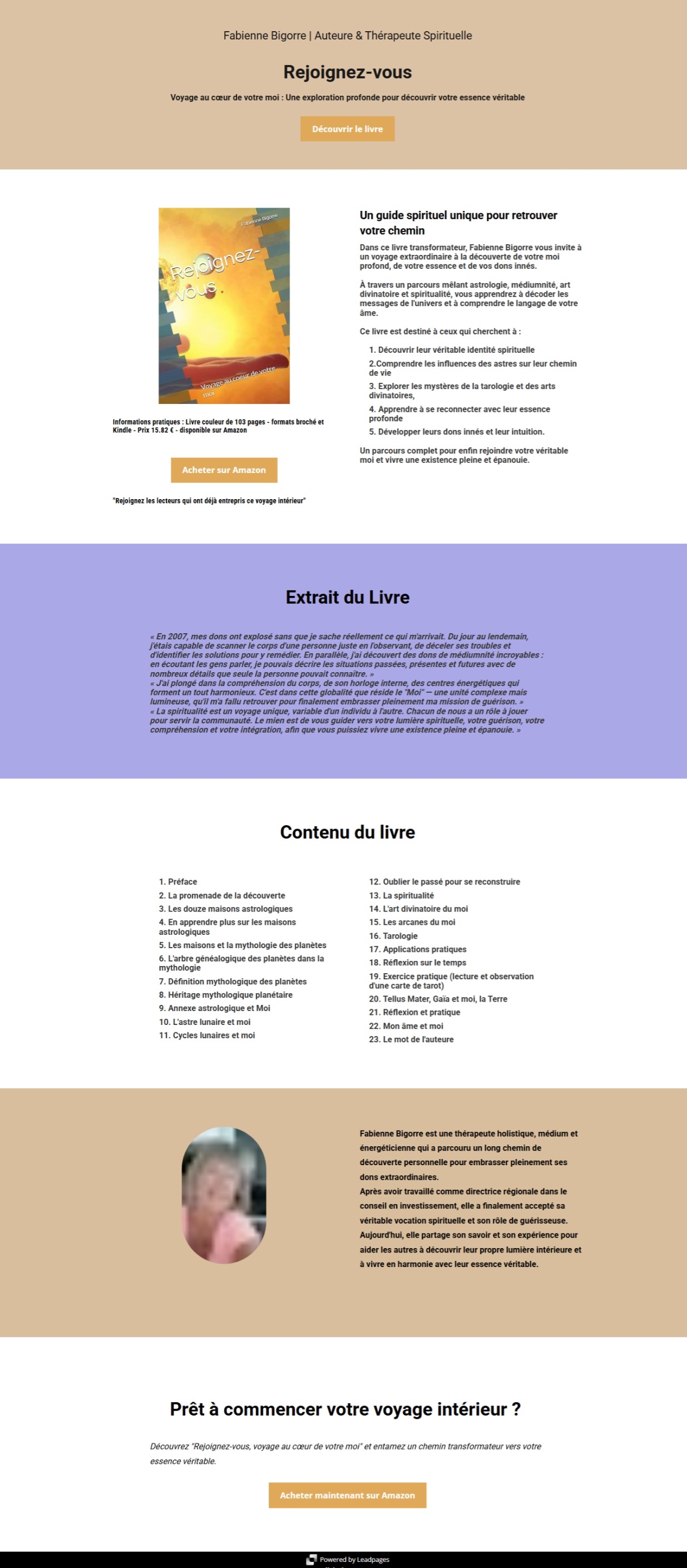 Fabienne Bigorre est une thérapeute holistique, médium et auteure qui explore les liens entre l'énergie, la spiritualité et le bien-être physique.